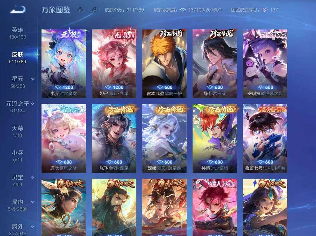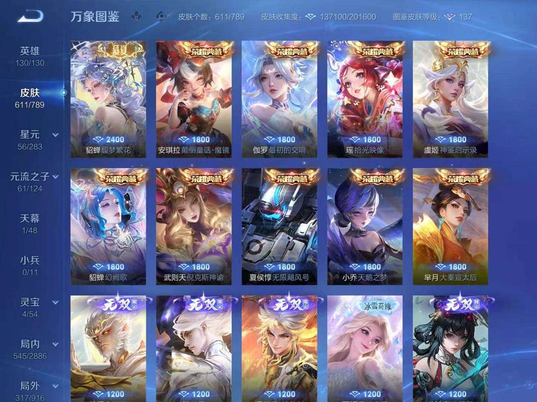 ios区 貂蝉馥梦繁花、最初的交响、神鉴启示录、青丘九尾、离恨烟、时之魔女、器灵·落星盏