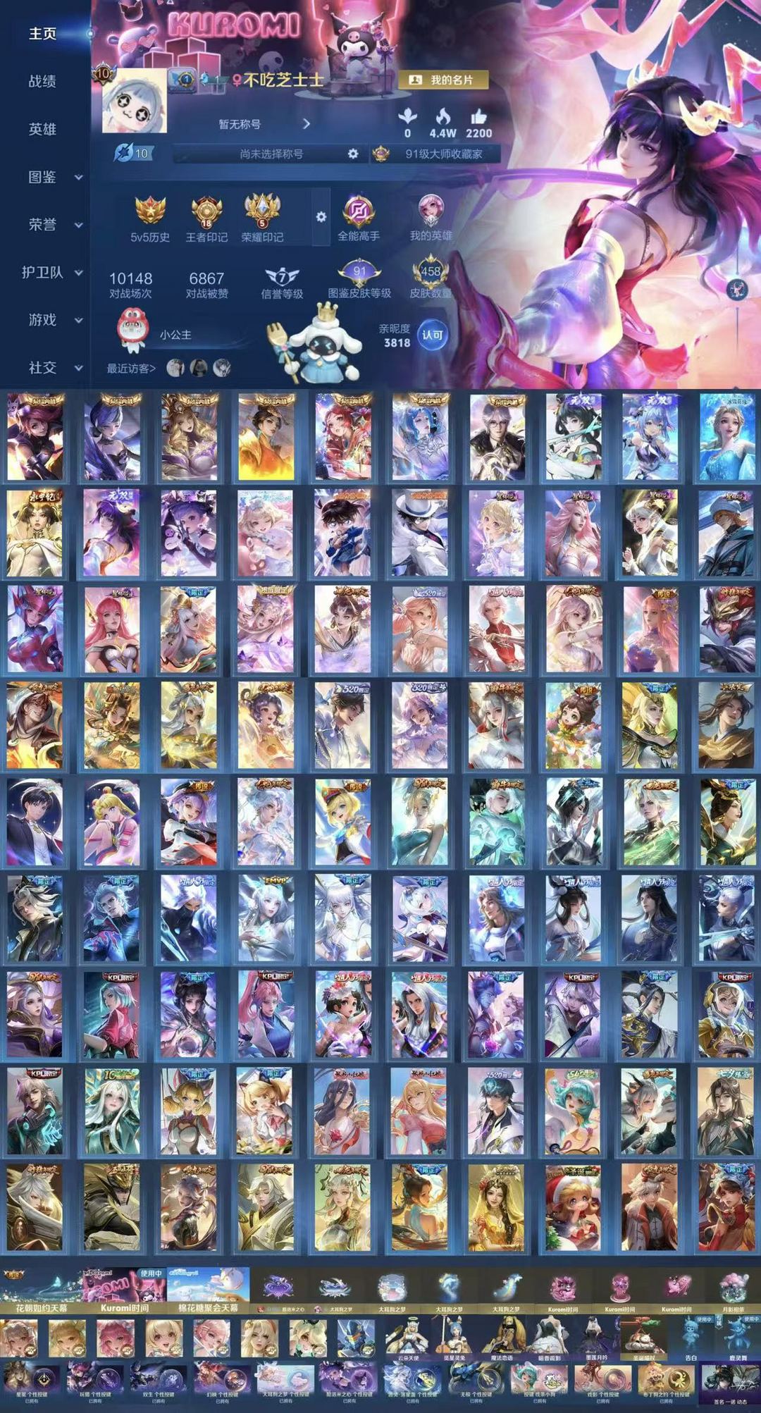 限制: 撤单率<30%才可租用此帐号装备描述:iqv10全皮瑶漂亮女号 大耳狗兵/天幕 全皮瑶 无双魔女小乔离恨烟公孙离甄姬 有瑶告白 荣耀典藏貂蝉 小乔 孙尚香等 珍品柯基/瑶/安琪拉 目前禁言