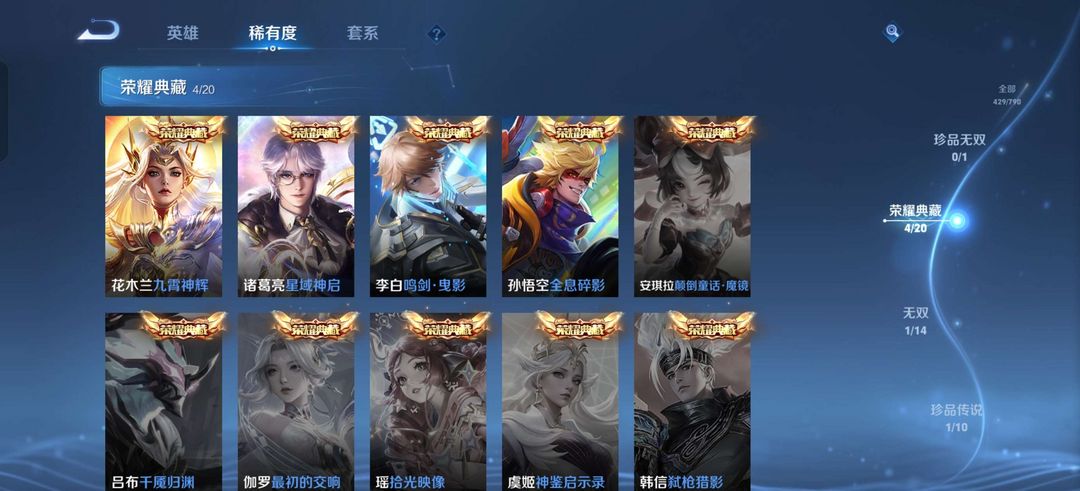历史v9四百多个皮肤,四典藏,一无双,马可波罗珍品,电耗子,冰霜恋舞曲,冰封战神,天魔缭乱等等