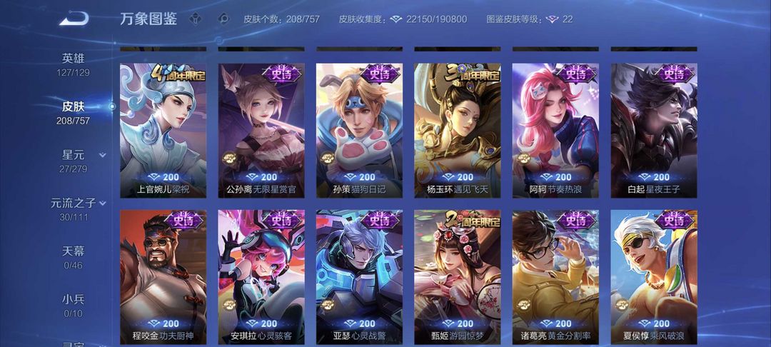 【V0 170皮】可排位/禁言/128英208皮/白龙吟至尊宝水晶猎龙者街头霸王地狱火黄金狮子座