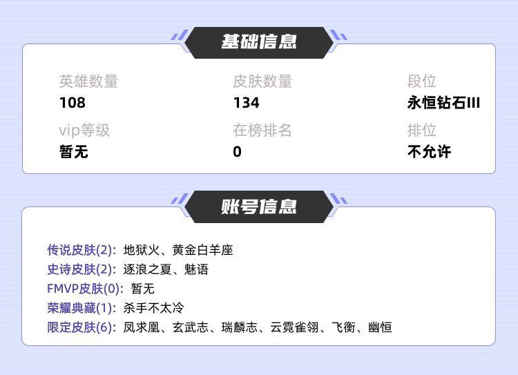 限制: 撤单率<30%才可租用此帐号装备描述:注:。游戏时间快结束时请勿开局,别挂机发现都是永久拉黑谢谢。