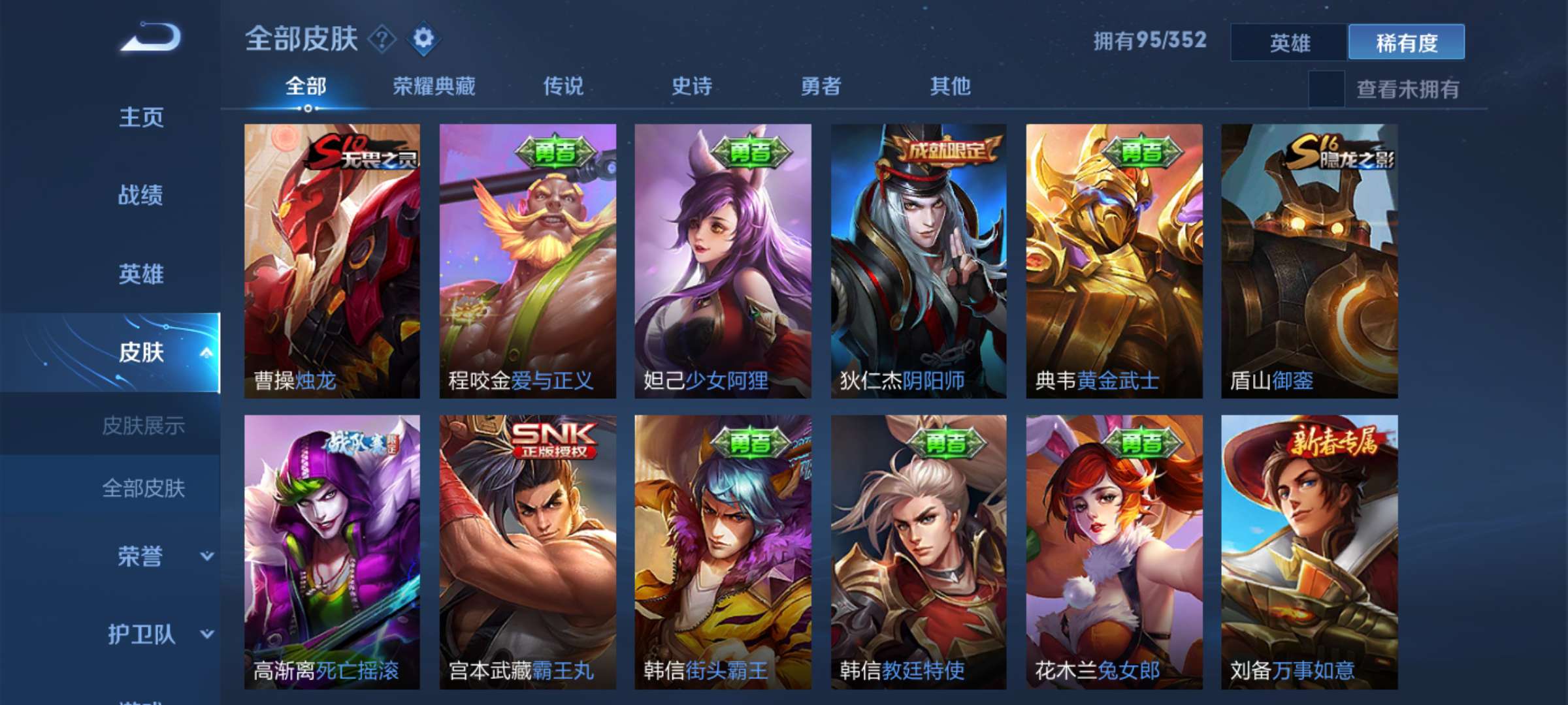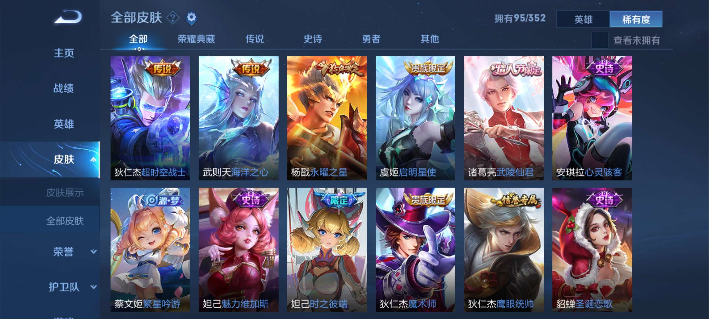 装备描述:贵族8武则天,超多传说限定皮肤,多五级铭文,妹子号,看图喜欢的就租。