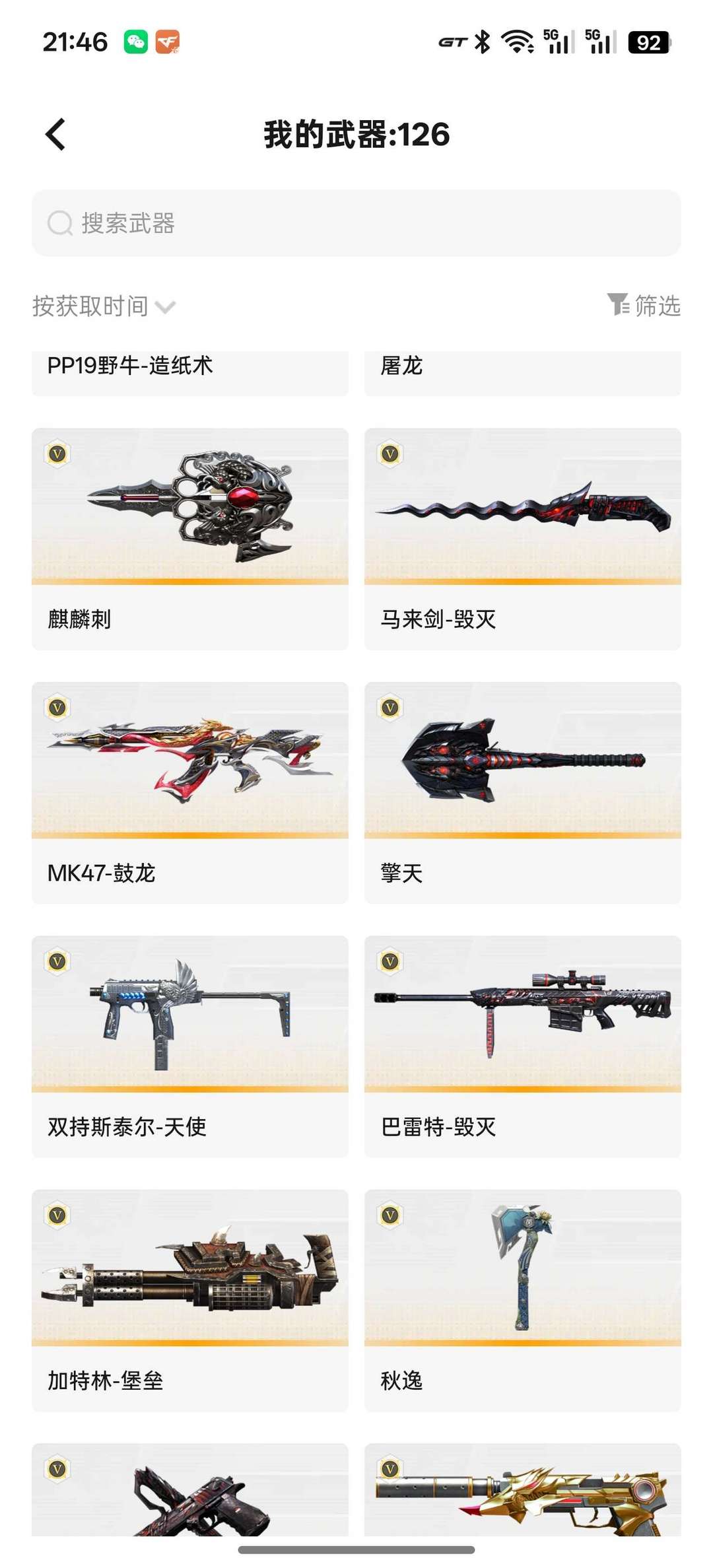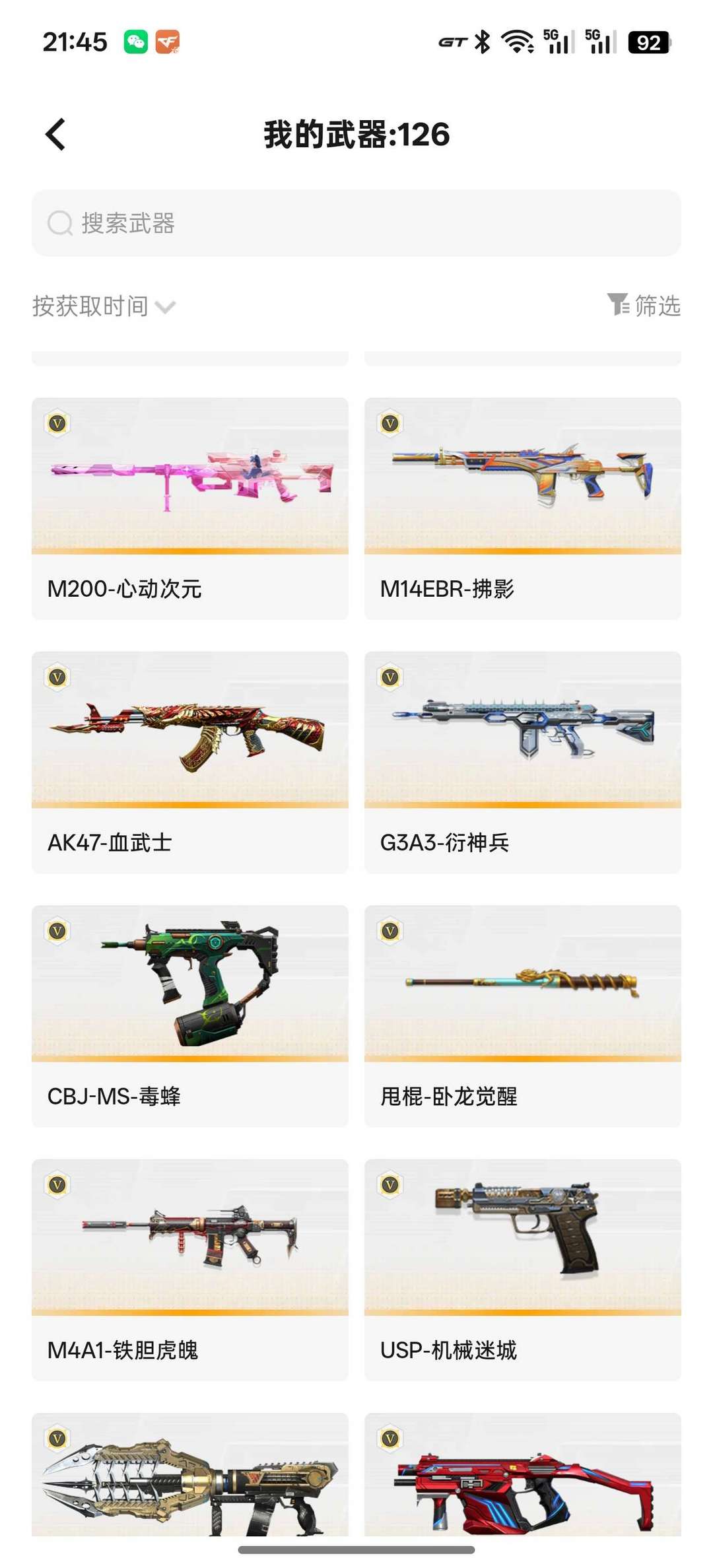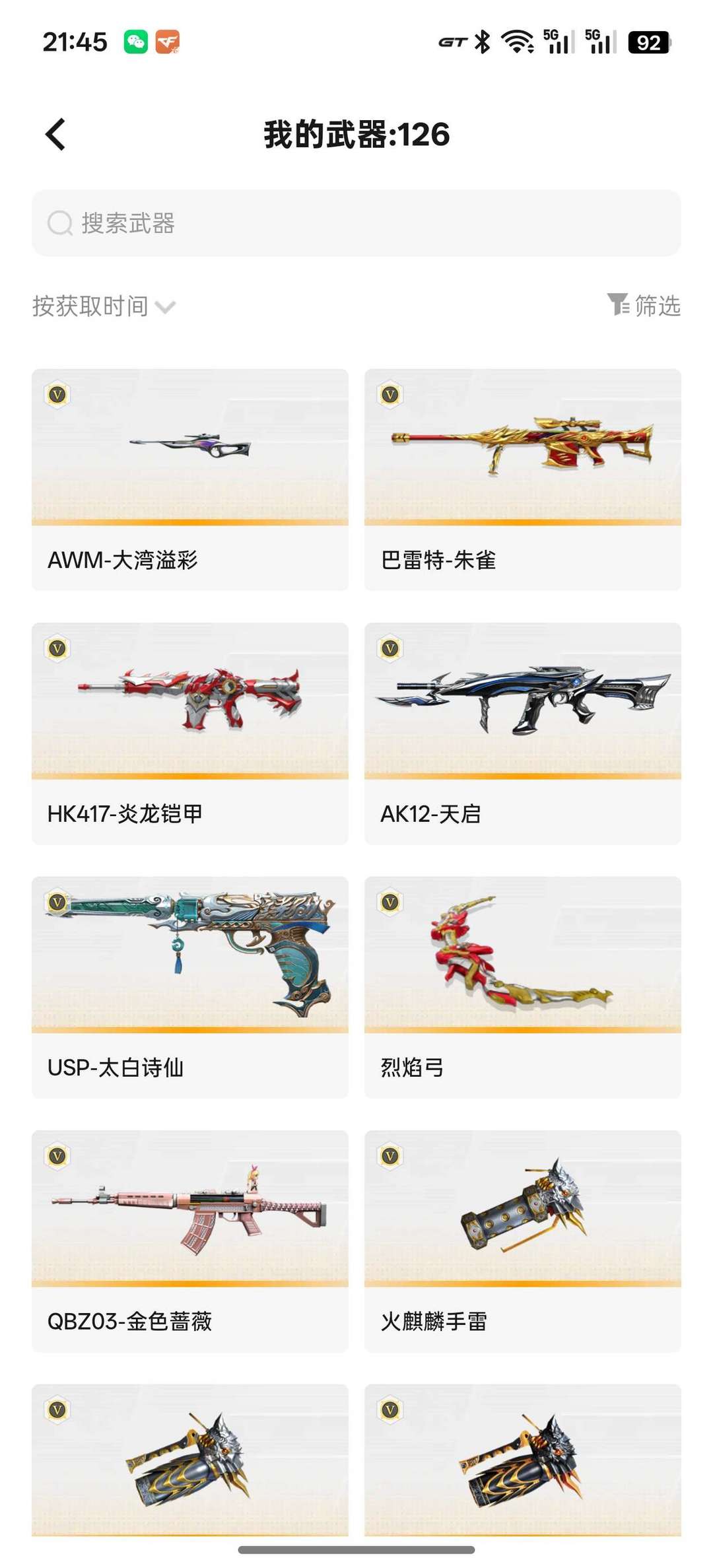 126个英雄级武器,大多数都有皮肤,有几个人物,在照片里