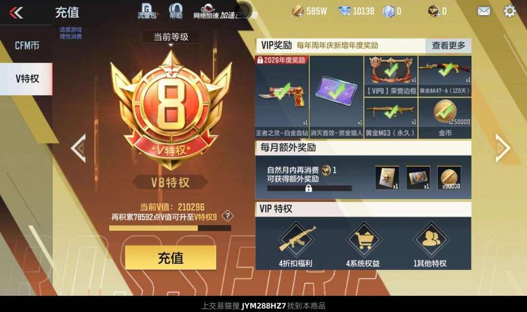 V8 41王者武器 319英雄武器 9英雄角色 491万化 枪皇JYM288HZ7