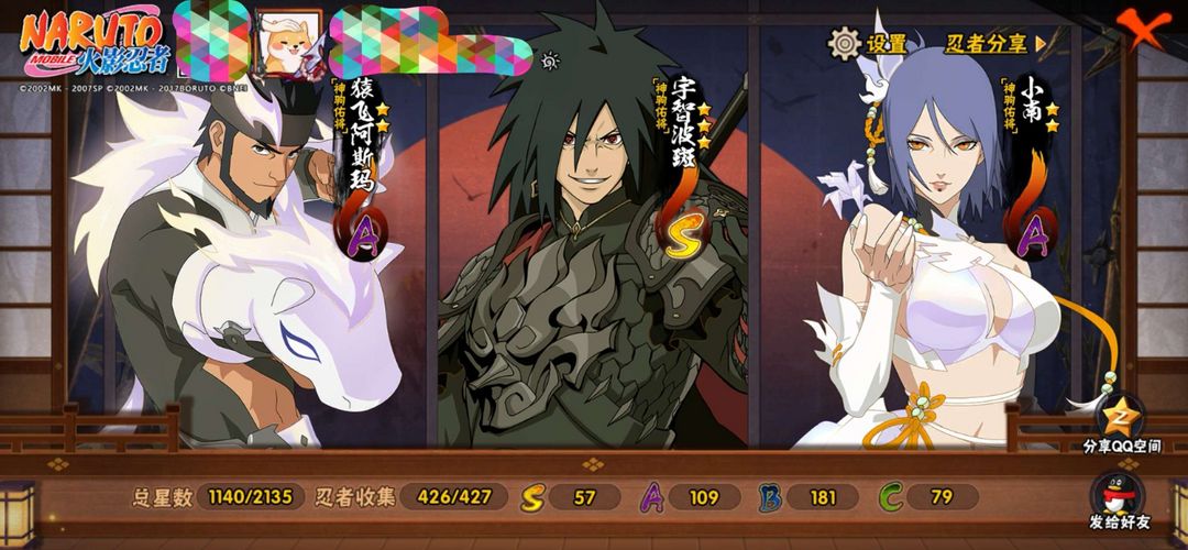 4320万战力、57S、109A、神驹佑将斑、神驹佑将阿斯玛、神驹佑将小南、黑绝