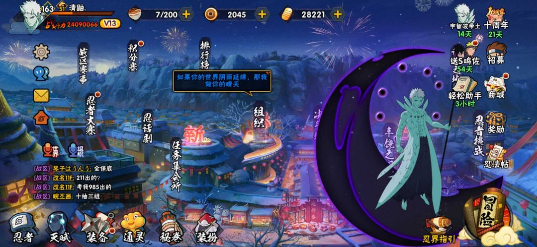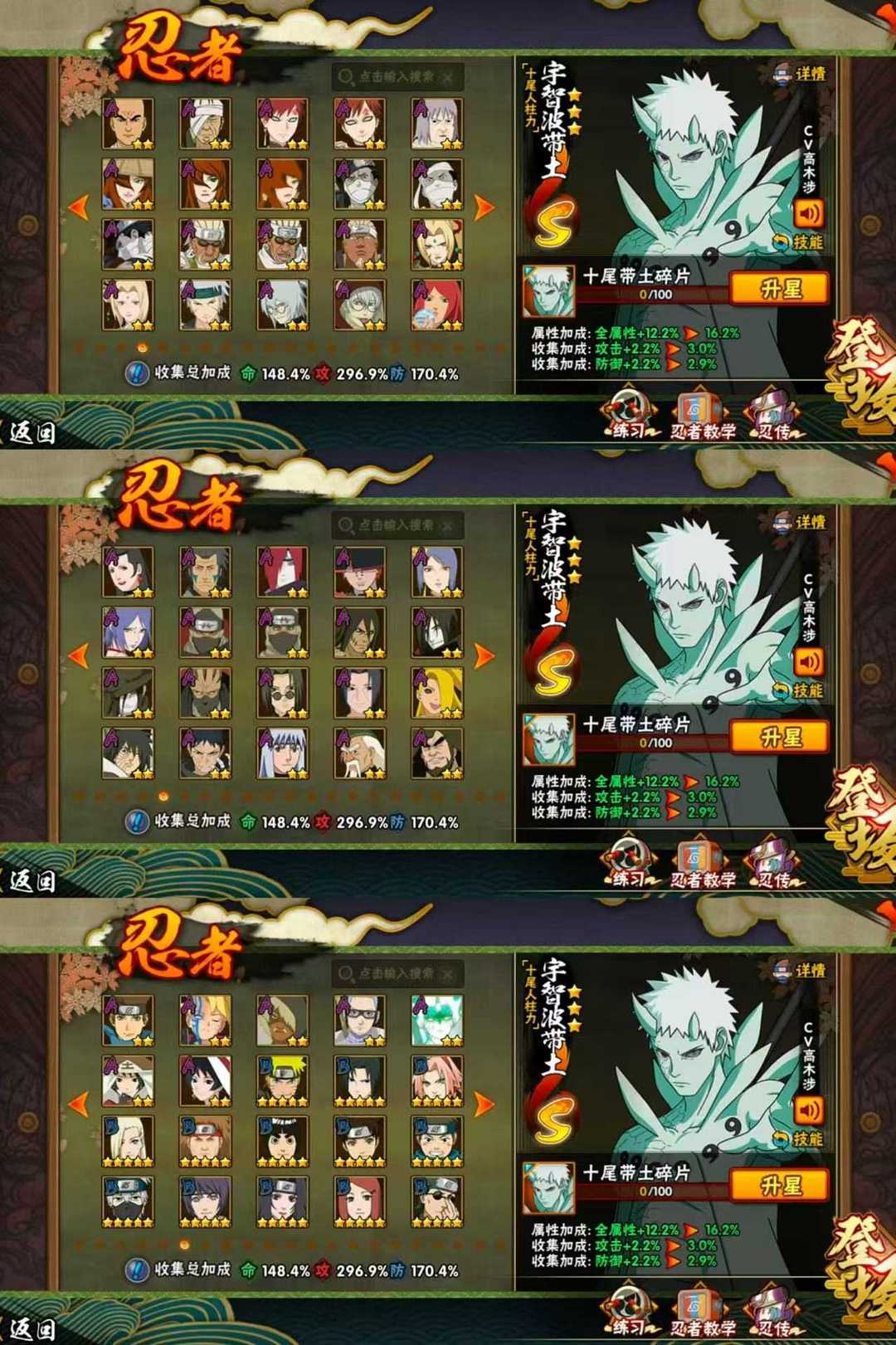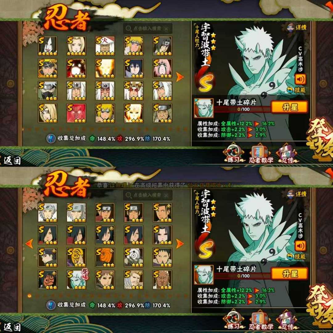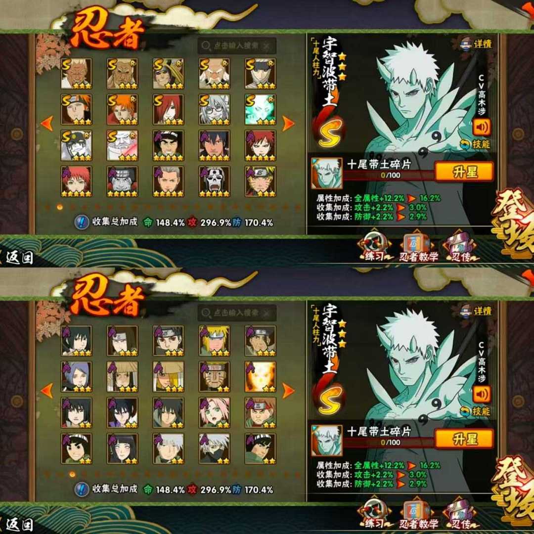 十尾带土☯五影斑☯仙人巳月☯九喇嘛水门☯侠隐佐助☯夏日黑土☯全高招忍者☯漂泊带土☯2400w战力
