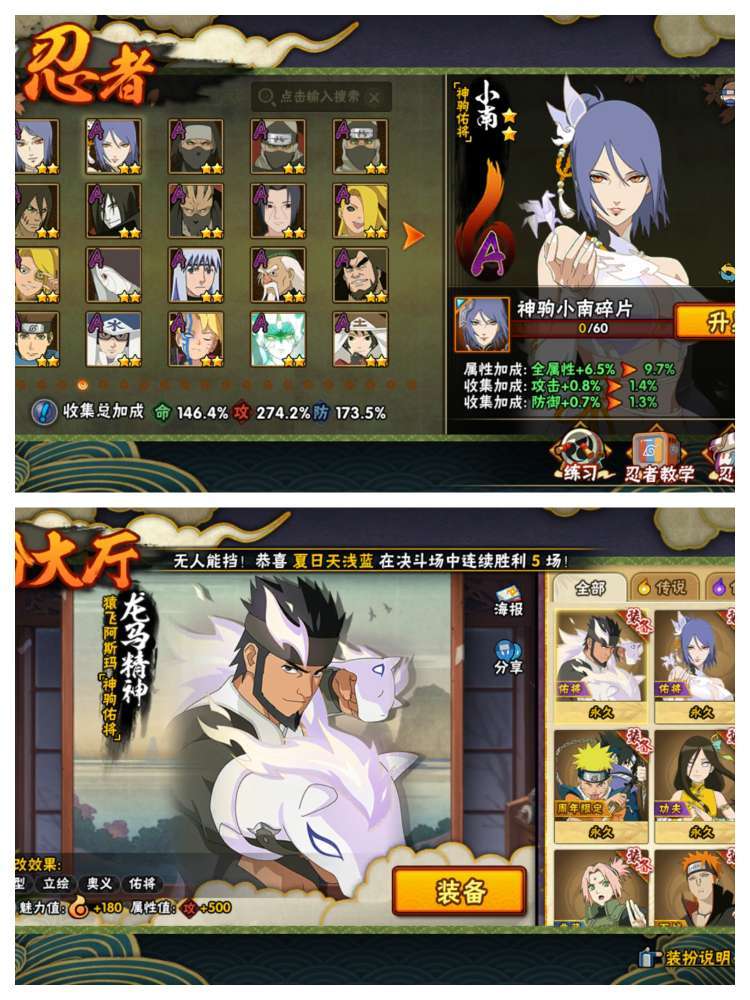 装备描述:☀新春迪达拉☀妖姬纲手☀泳装鼬☀新春雏田☀熊猫☀二尾☀万蛇☀全高招s☀