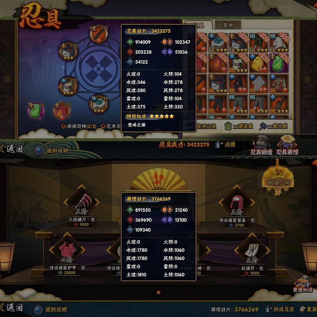 57S全忍者✨3500万战力✨2200属攻秒团本✨神驹斑✨黑绝✨漂泊带土✨侠隐佐助✨十尾带土✨五影斑