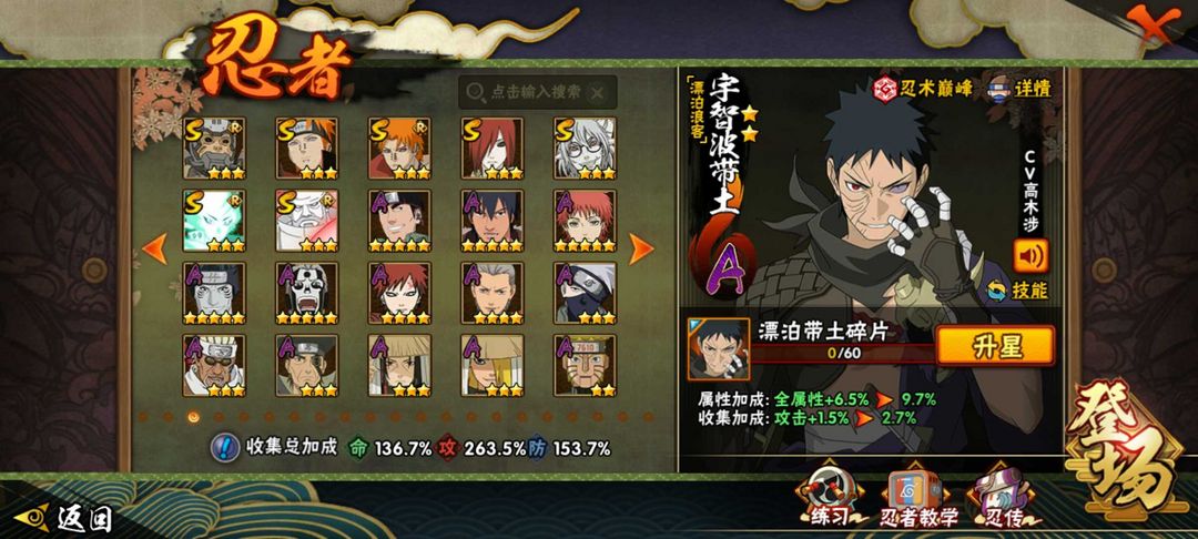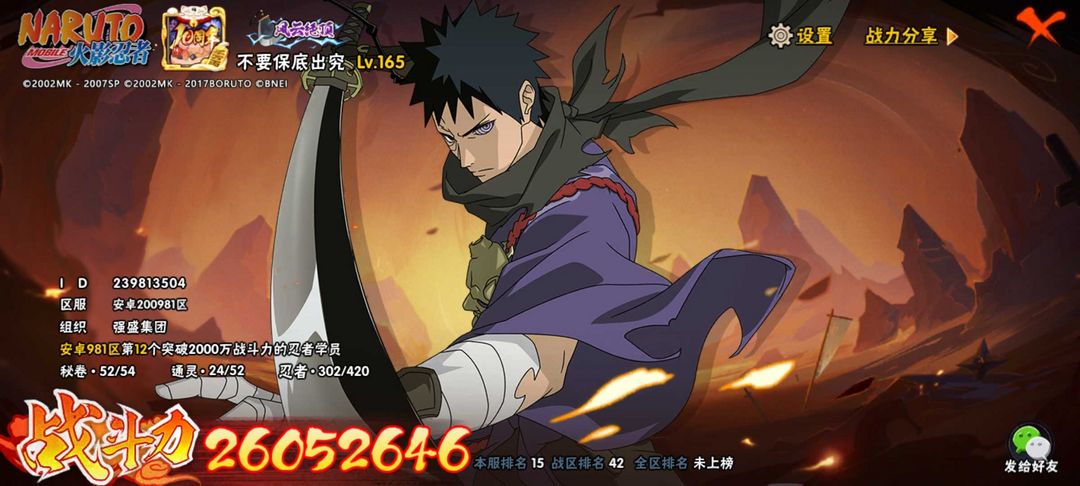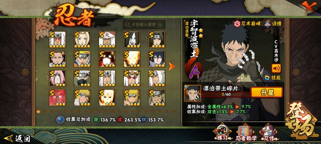 VX区♈漂泊带土♈47S♈2600w可团本♈惊门凯♈夏日鼬♈V15多氪金♈漂泊小南✨卑留呼✨忍战雷影