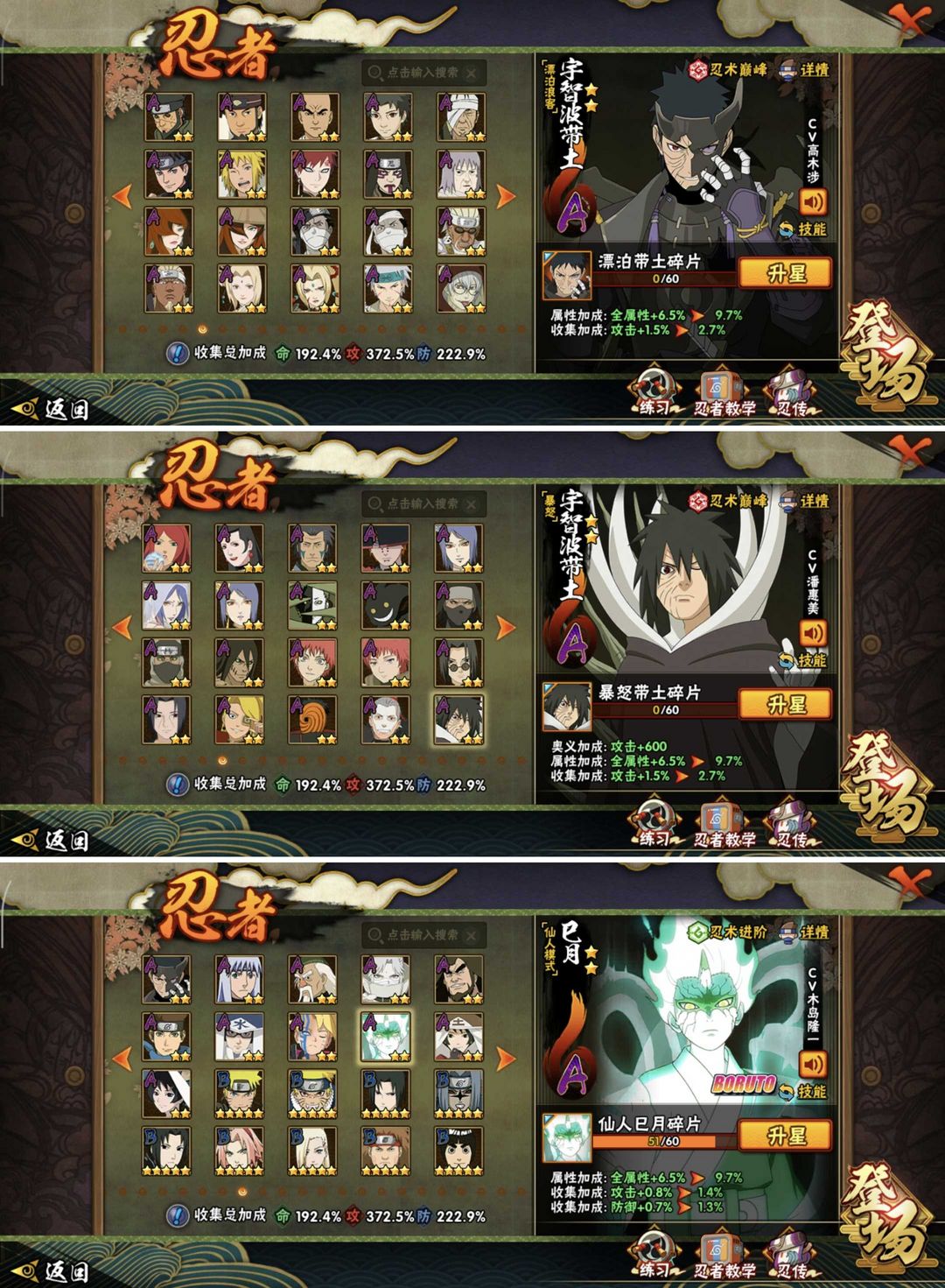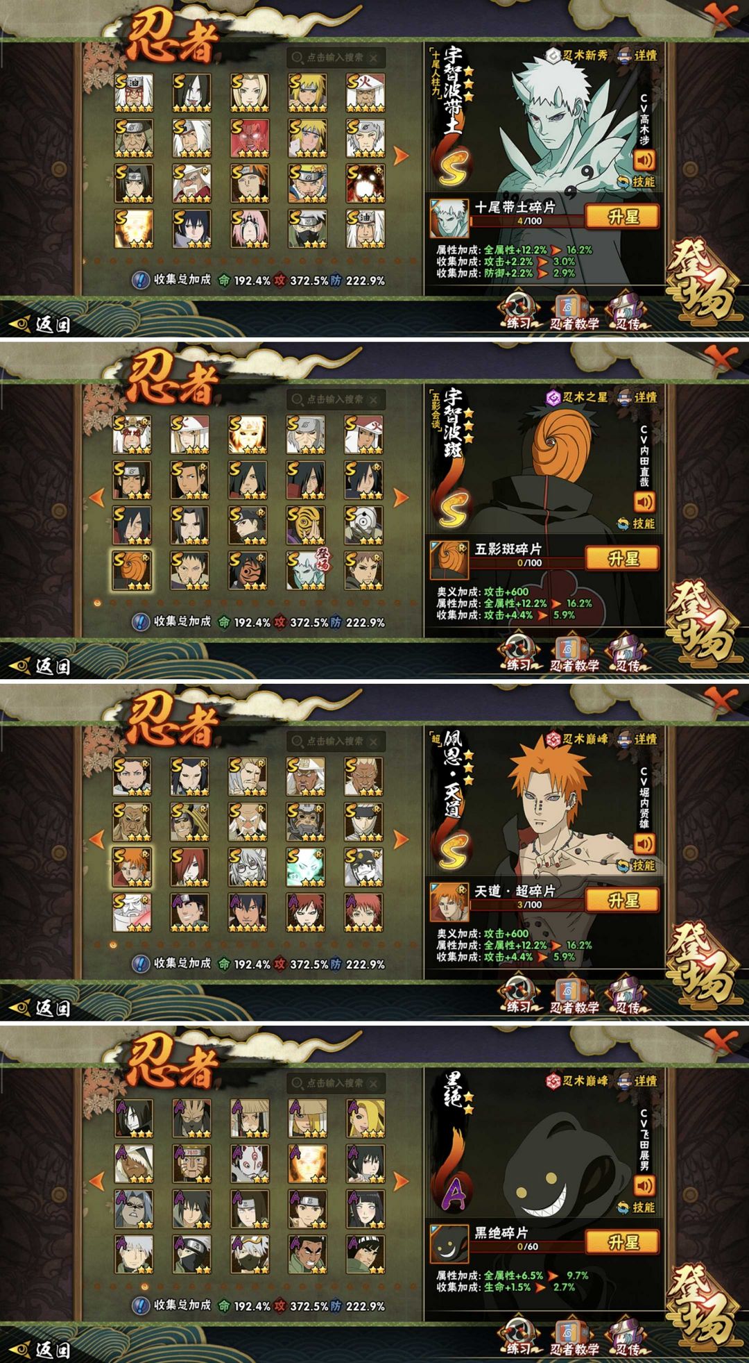 秒十尾带土✨黑绝漂泊带土✨3700w407全忍者✨56SV15高氪✨五影会谈斑✨天道超