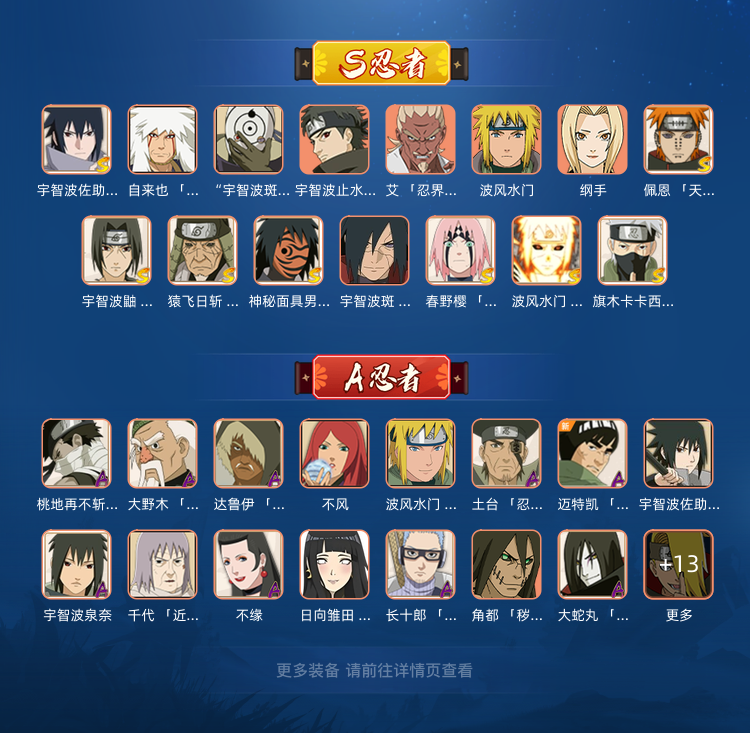 15s忍,27a忍*九喇嘛水门*须佐卡卡西*须佐止水*忍战艾*永恒佐助*秽土解斑*红叶带土*白面具
