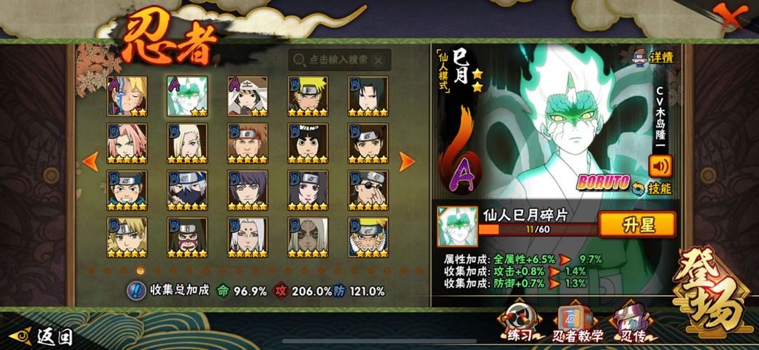 装备描述:土转生」;猿飞日斩;迈特凯 「死门」;千手扉间 「秽土转生」;自来也;宇智波带