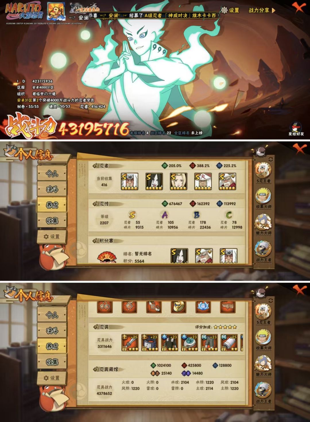 ✨4300万战力✨55S全忍者✨2100+属攻✨五影斑✨黑绝✨漂泊带土✨夏日黑土✨暴怒六尾鸣人✨