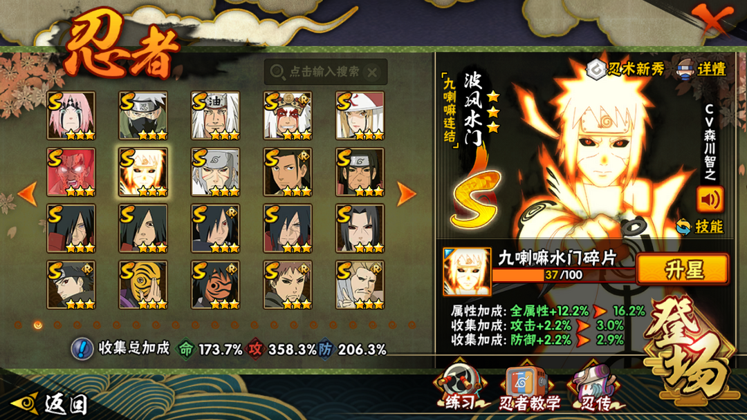九喇嘛水门➣须佐卡卡西49S➣大筒木舍人➣白面具➣天道超➣3150W➣V15➣94A➣三代风影