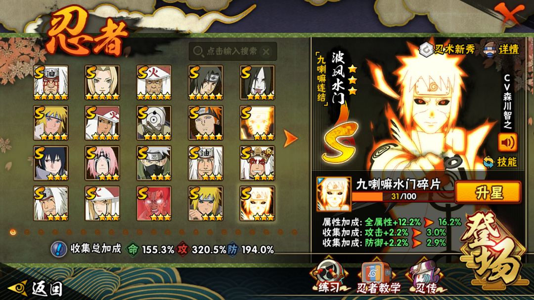 九喇嘛水门♉大筒木舍人♉白面具♉须佐卡卡西♉须佐止水♉全忍者♉51S♉3050W♉71A♉V15