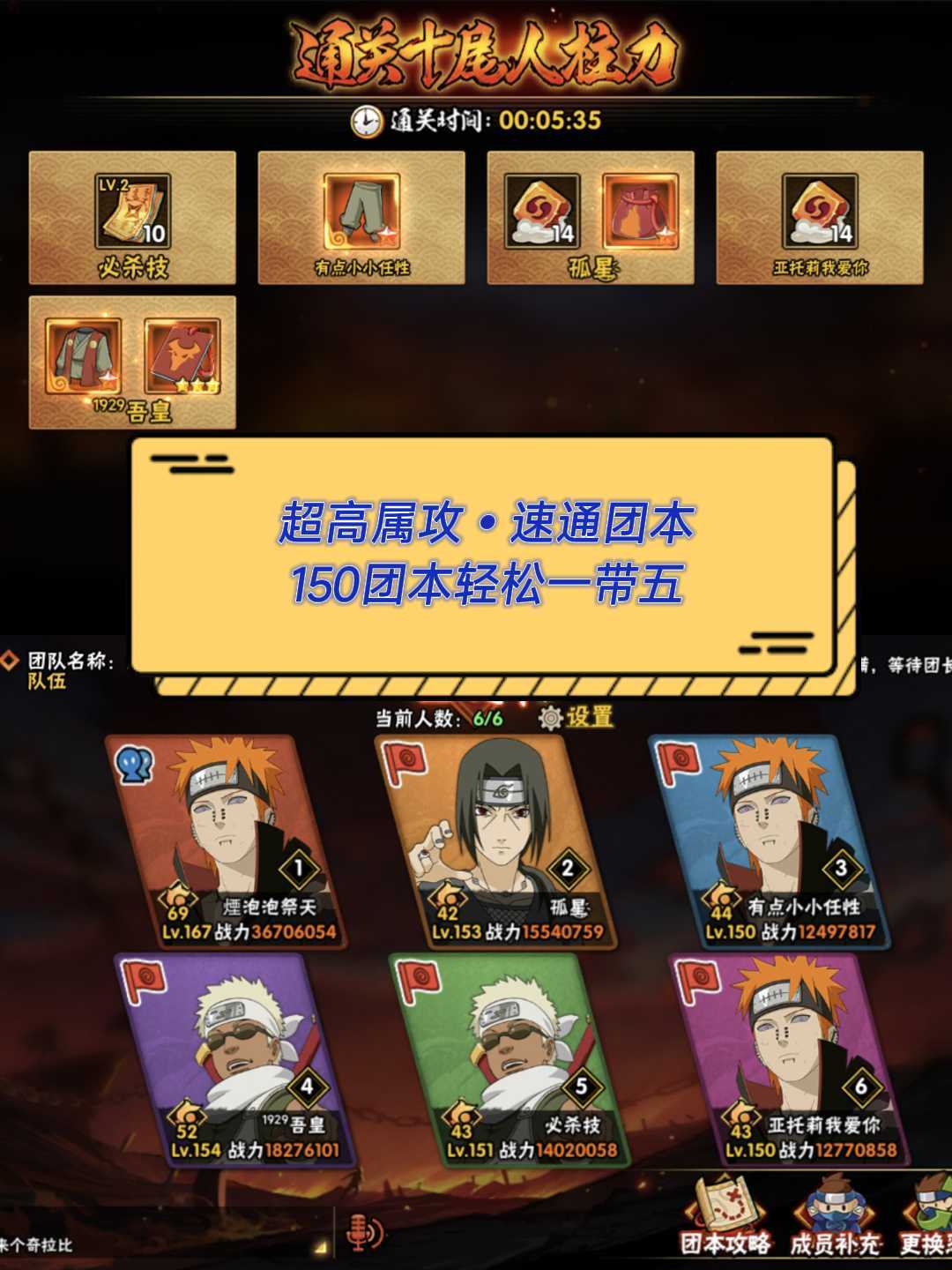 十尾带土+主场景♋全忍者全通灵,3670W战力✨69级魅力✨超高属攻★五分钟速通150团本