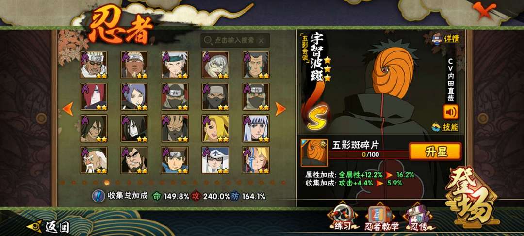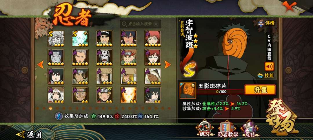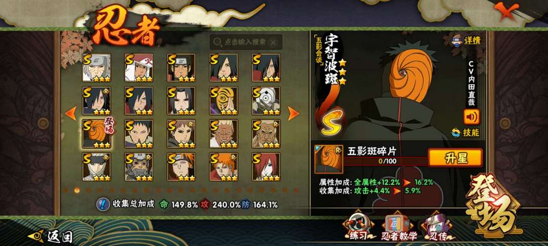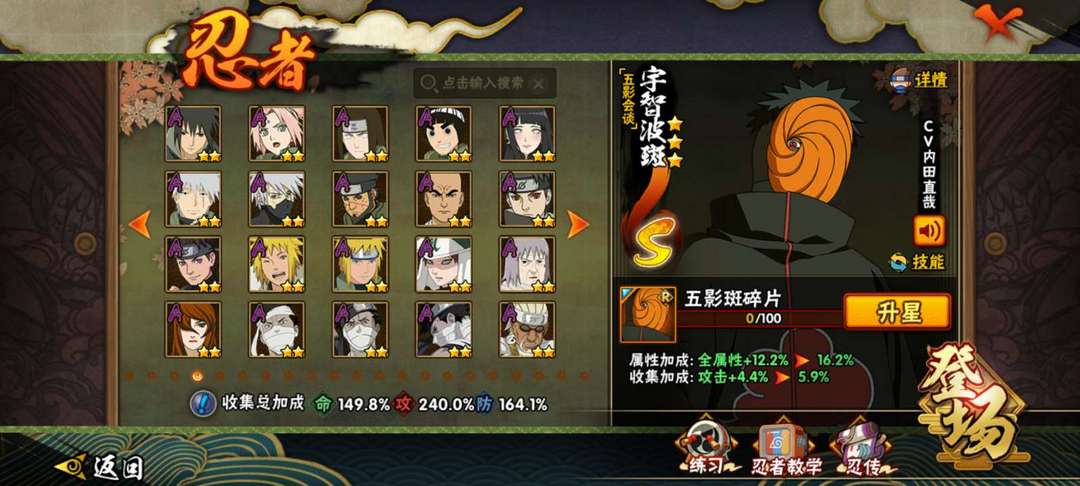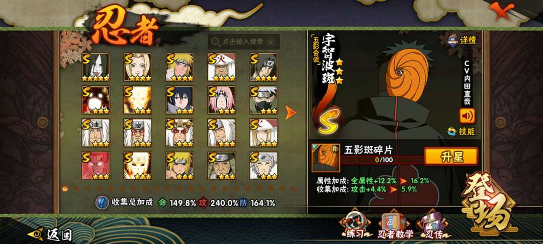 五影带土、巳月、金身水门、6尾鸣人、解斑、忍战带土、须佐卡卡西、超哥、42s、57A、共317忍!