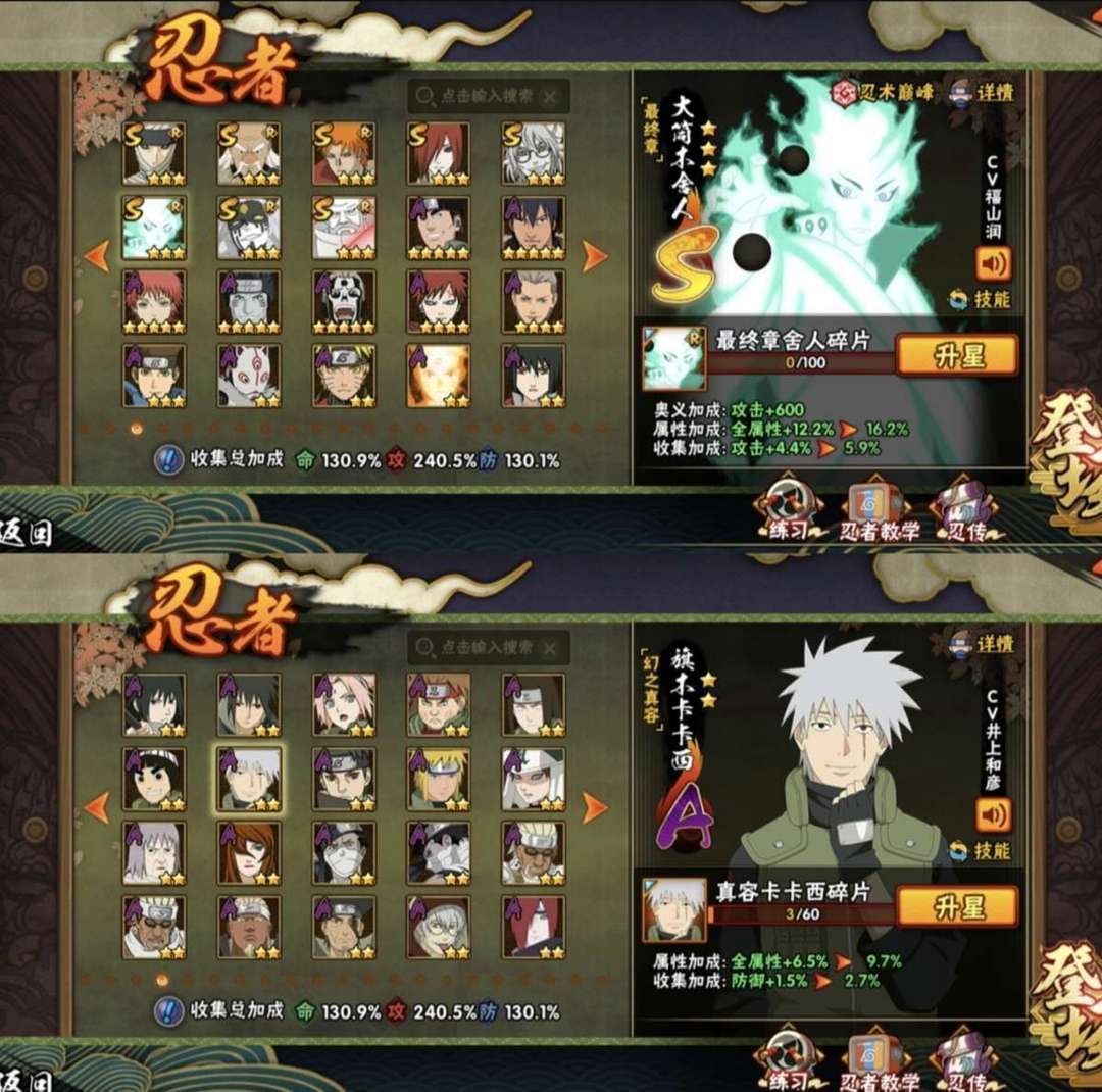 52S✨天道超✨九尾水门✨六尾鸣人✨漂泊带土✨面麻✨漂泊小南✨漂泊六道✨2000w✨全忍者