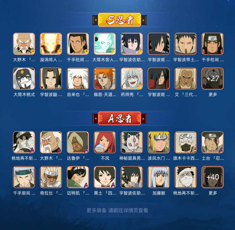除了活二代活斑全高招忍者,须佐卡卡西,忍战带土,天道超,红夜带土,须佐止水,九喇嘛水门,大筒木舍人