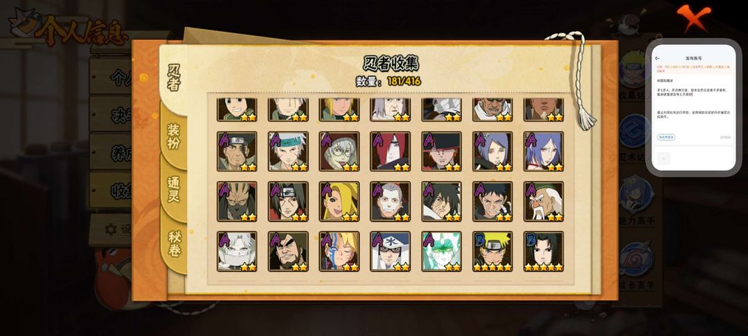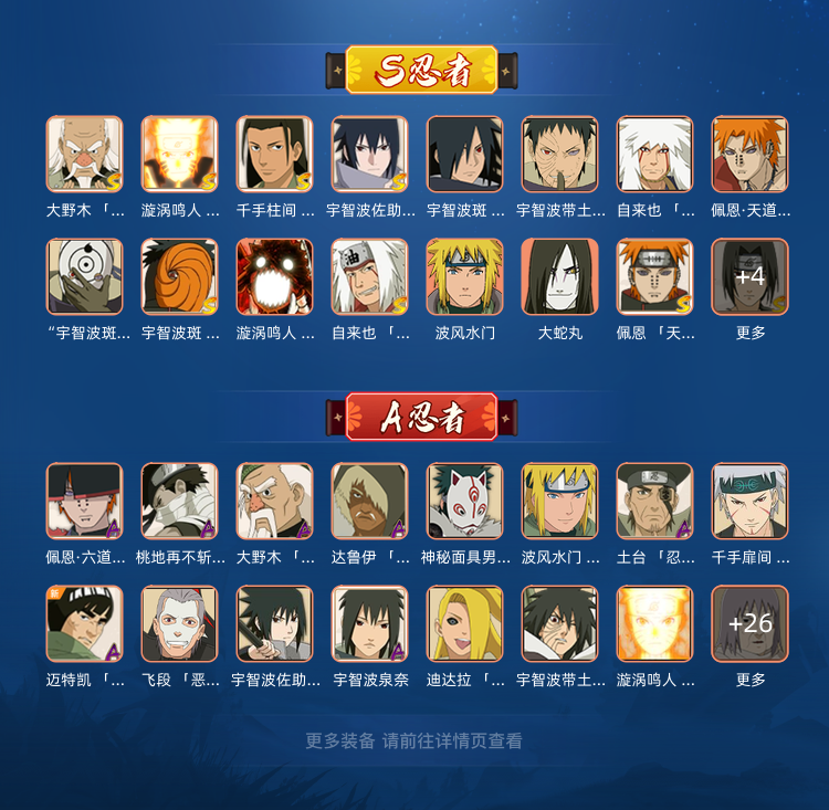 20S,41A,181忍者,多点卷忍者,版本强势忍者差不多都有,面麻破面漂泊带土天道超