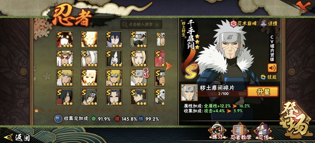 23s43a,段位低,有熊猫,适合练忍者漂泊带土,漂泊小南,六尾,五影带土