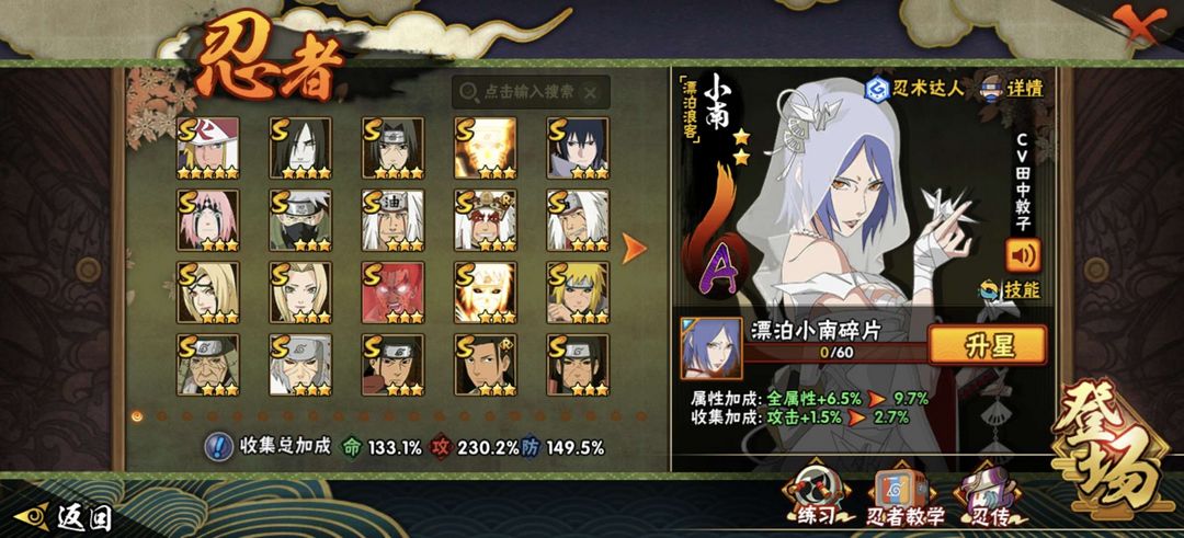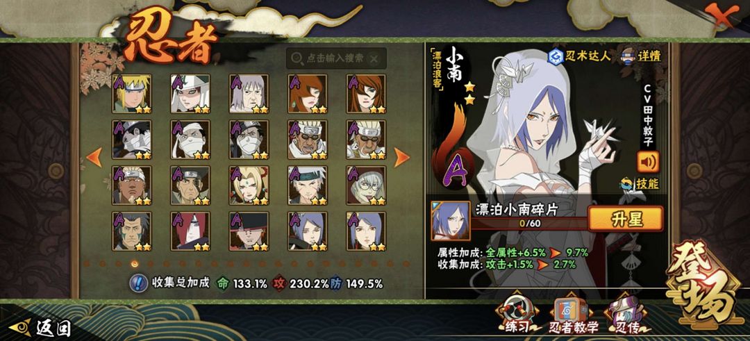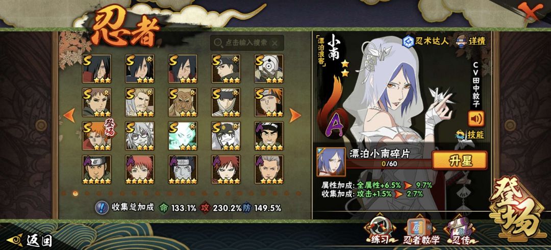 漂泊带土、漂泊小楠、漂泊再不斩、漂泊扉间、蝎晓创生、惊门凯、暴怒带土各种S和A