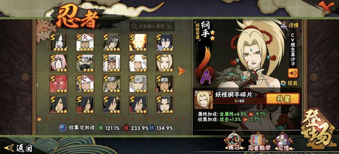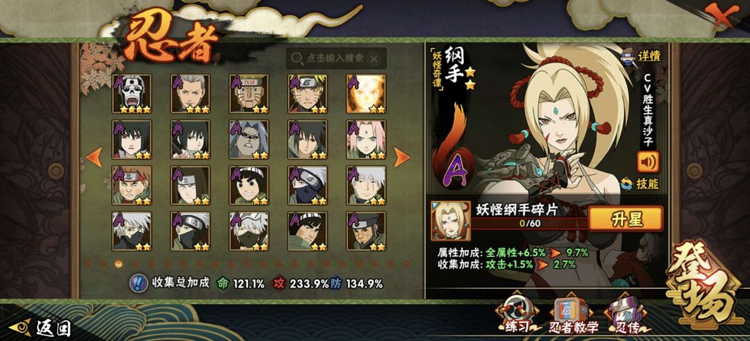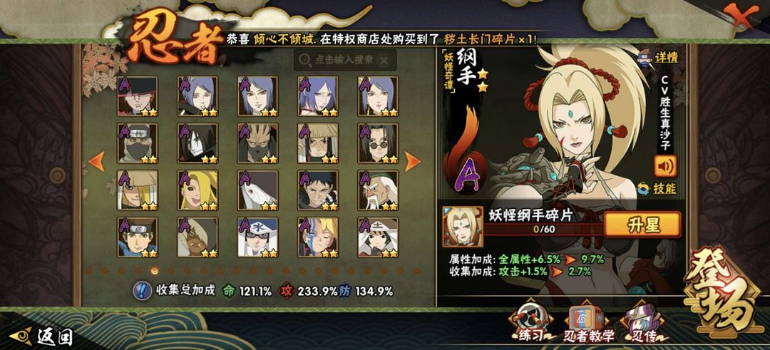 装备描述:还有很多娱乐忍者有熊猫 螃蟹二尾段位够用 1700w战力也能带团本