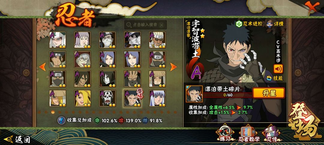装备描述:漂泊带土 九喇嘛联结水门 秽土F4 六尾鸣人 泳装小南 普通人等