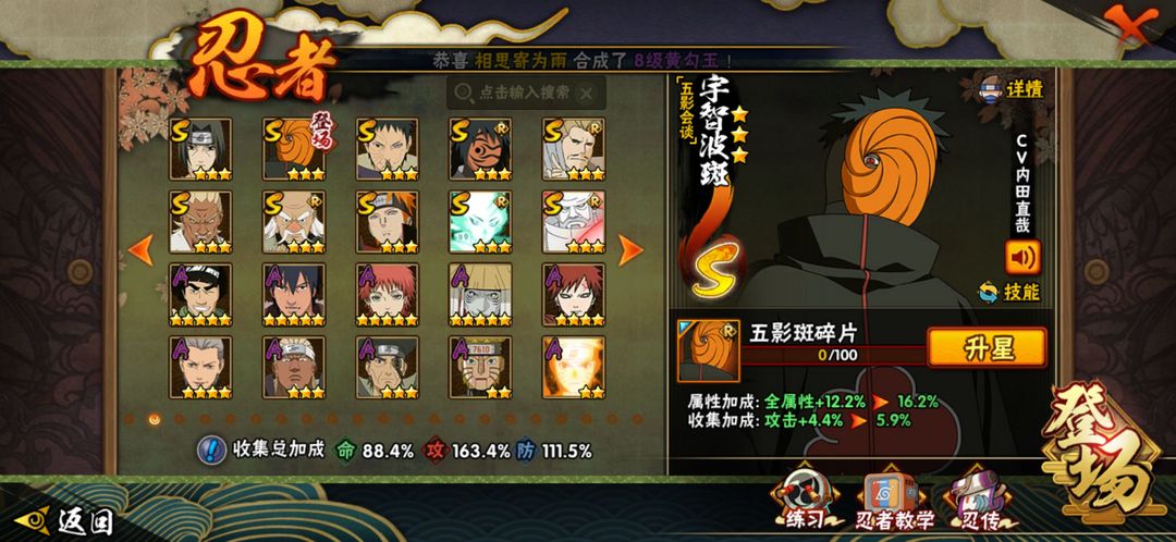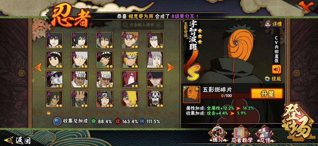 甘了好久能有一些忍者可以玩一千三百万战力比不上那些几千万的也不差