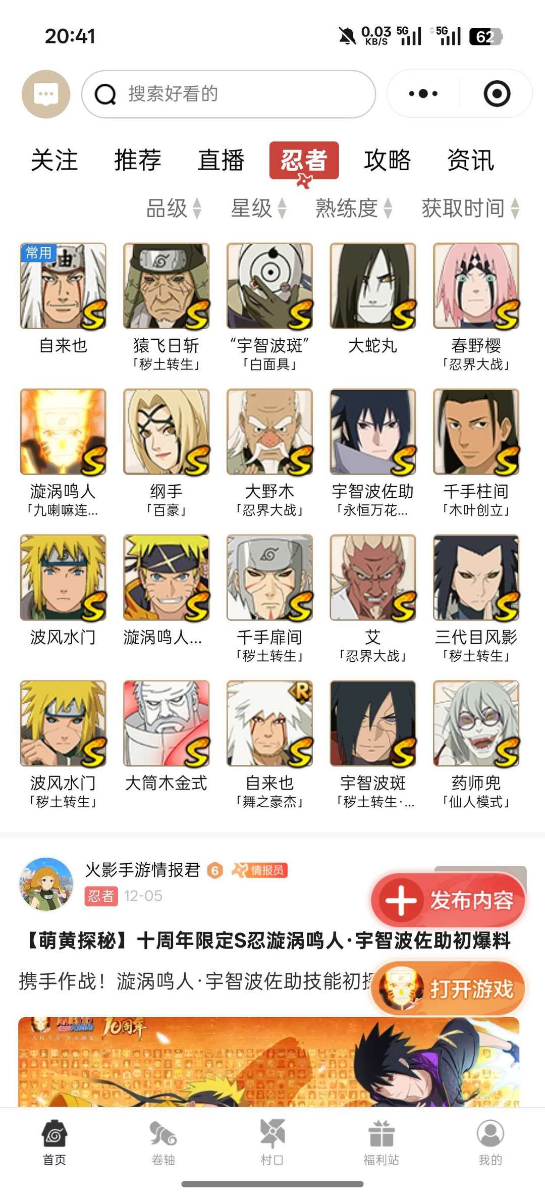 装备描述:三代风影,黄猿,百豪纲手,白面具,解班,死二等20个s,漂泊佩恩,还有29个a,熊猫蛞蝓,10级霸体