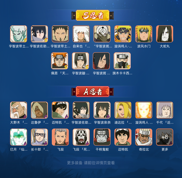 装备描述:《假期限时特惠》十尾带土已秒|解班|鸡翅佐助|破面带土|须佐卡|白面具|长十郎|仙人巳月|金鸣|骨架
