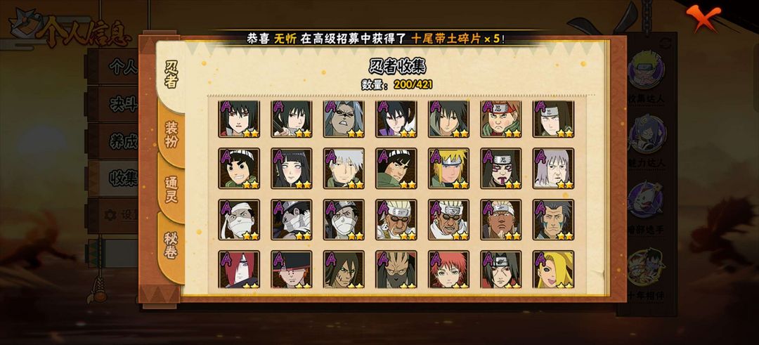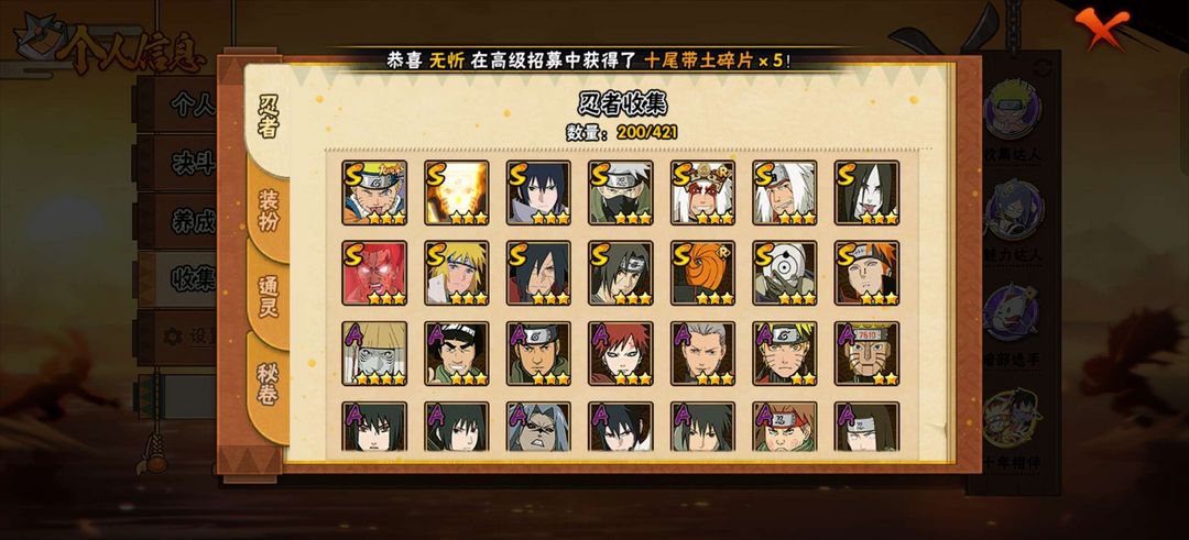 装备描述:14S,42A,小孩,五影会谈斑,死门凯,鸡翅,侠佐,漂泊佩恩,漂泊再不斩,永恒佐,须佐卡,漂泊