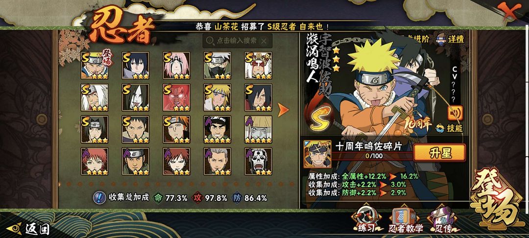 13S⭐️36A⭐️175忍⭐️忍战带土⭐️漂泊小南⭐️解斑⭐️忍战卡卡西⭐️三忍自来也⭐️
