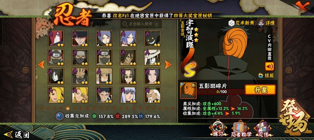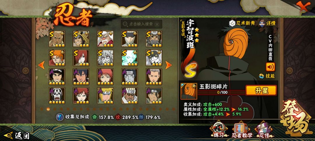 漂泊带土✨ 夏日鼬✨黑绝✨五影斑✨侠隐佐助战力 2650w⭐️50S⭐️78A