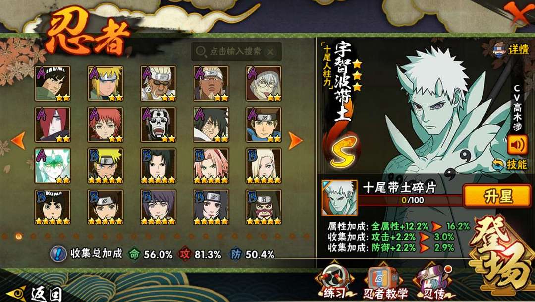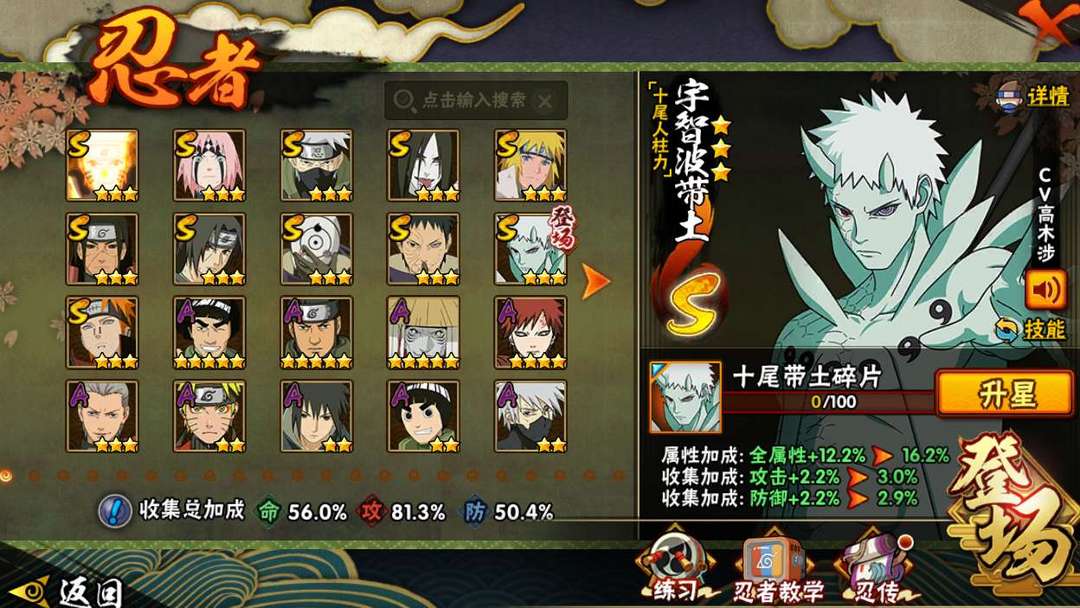 装备描述:新S 十尾带土已秒,九喇嘛鸣人,忍战樱须佐卡卡西,水门,秽土柱间,须佐鼬,白面具,忍战带土,佩恩!!!随时玩!!!!!