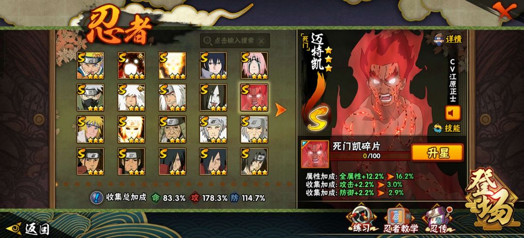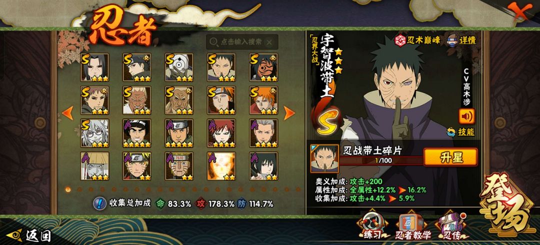 31S+68A,共216忍,包含忍战带土,天道超,活初代,活二代。