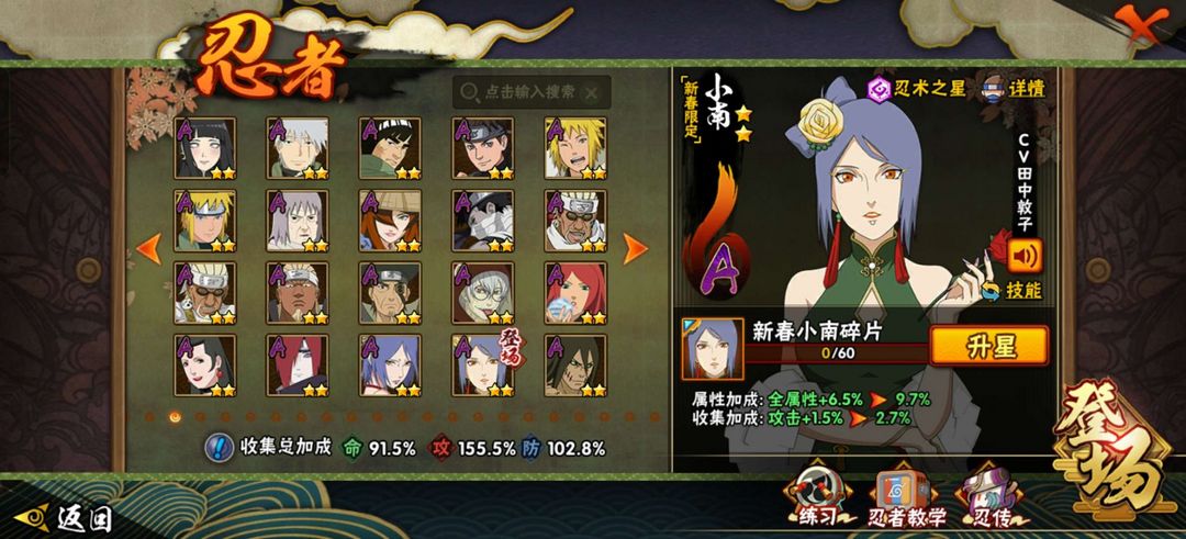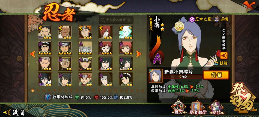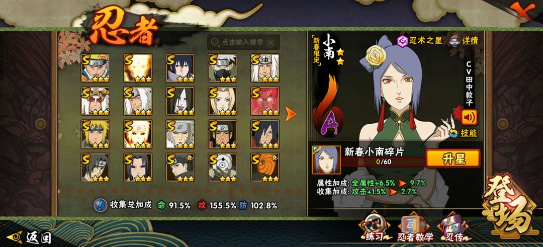 装备描述:一共211个忍者,超多强力s忍等你来玩,有解斑,舍人,须佐卡卡西,阴九尾水门,白面具等