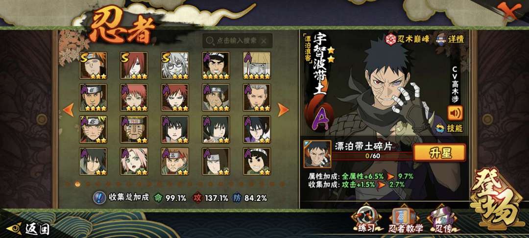 装备描述:23s漂泊带土⭐侠佐助⭐熊猫⭐螃蟹⭐全带土系列⭐1300w战力✨带土全系列,✨可带团本✨