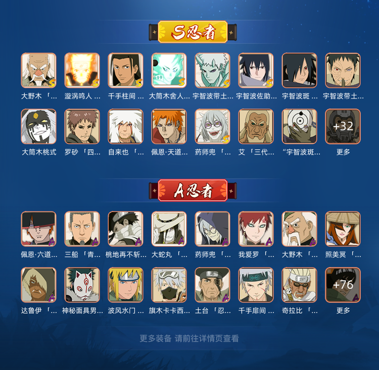 装备描述:386个忍者,有阿飞,鲛肌融合鬼鲛,惊门凯,忍战凯,晓创生蝎,晓创生飞段,黑绝,十尾带土,金身水门,漂泊忍者全齐,侠隐夏日忍者全齐全皮肤,熊猫螃蟹万蛇变色龙
