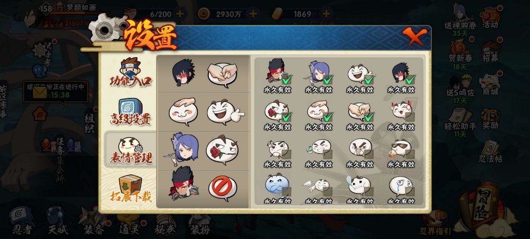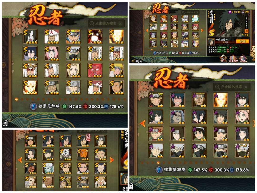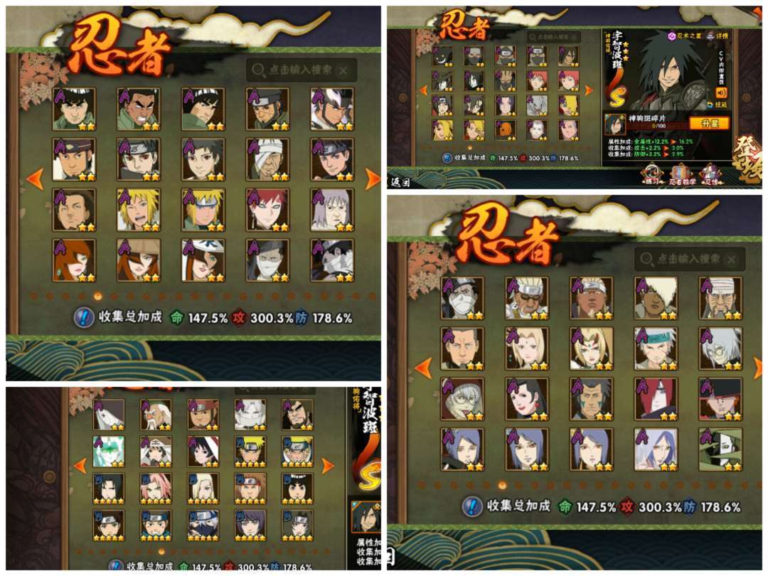 装备描述:已购入新春老马和全部全新新春时装和语音表情包,已秒神驹斑,还有十尾带土,体验许多648和198奥义图,侠佐表情,近乎全S和全部A,有全328忍者和198,可以体验氪金忍者的快乐,而且全98通灵,密卷除了氪金全部十级,也有全部密卷,体验感拉满!!!