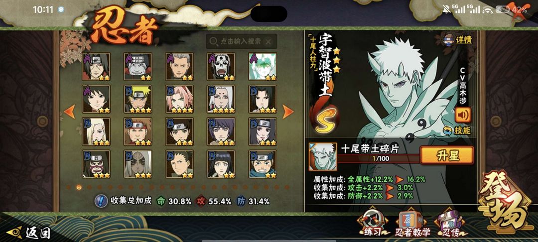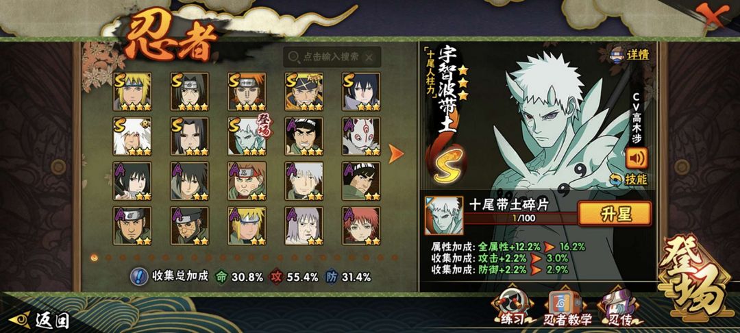 装备描述:热门忍者有:十尾带土、仙人巳月、秽土鼬、永恒佐助、须佐鼬、须佐佐助、面麻、幻术卡卡西、青年艾、青水、四代目黑土等