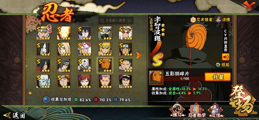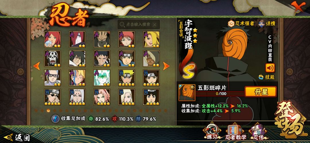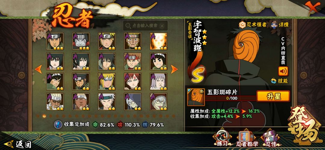 装备描述:可排位,漂泊二代,侠影兜,百豪纲手,秽土柱间,秽土斑,秽土水门,须佐能乎卡卡西,九尾鸣人,永恒佐助等强势忍者,祝你的生活每天过得愉快❤️