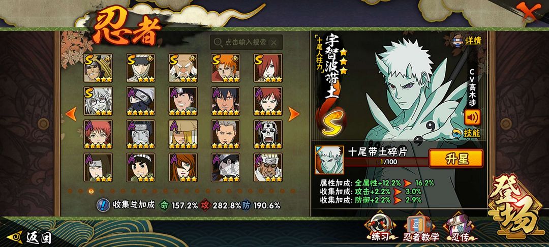 全高招忍者s忍a忍几乎全满加几个排位氪金通灵