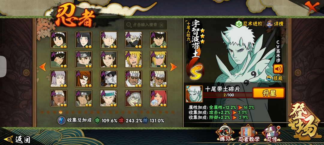 拥有大多数主流s忍。超哥,六道带土,九喇嘛连结,秽土转生柱间,死三代