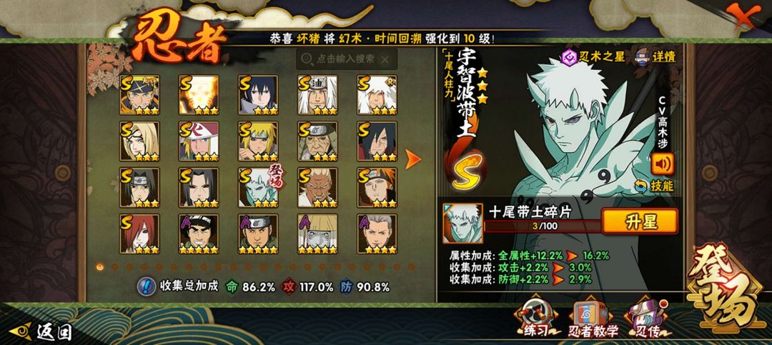 16S42A 十尾带土,忍战艾,秽土鼬三代长门,青年长门艾水门等等热门忍者 1200w 战斗力