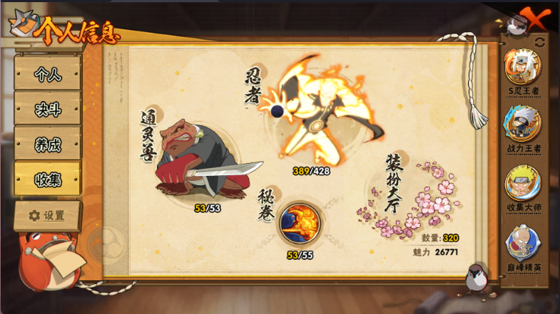 装备描述:54S只差神驹班宇智波斑千手扉间,91A点卷A大部分都有。详细可看图,水/土属攻2200+,可带团本。150换套装二基本5分钟左右