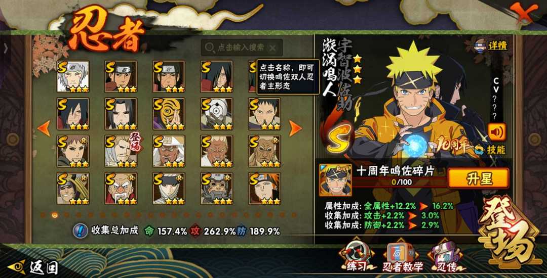 T43S❤2700万❤️九喇嘛鸣人❤️秽土柱间❤️死门凯❤️忍战带土❤️十周年鸣人