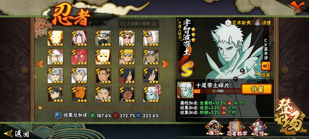 十尾带土以秒 ③②①区416个忍者3470万战力(56S) 金身水门秒 暴怒六尾●秽土在不斩