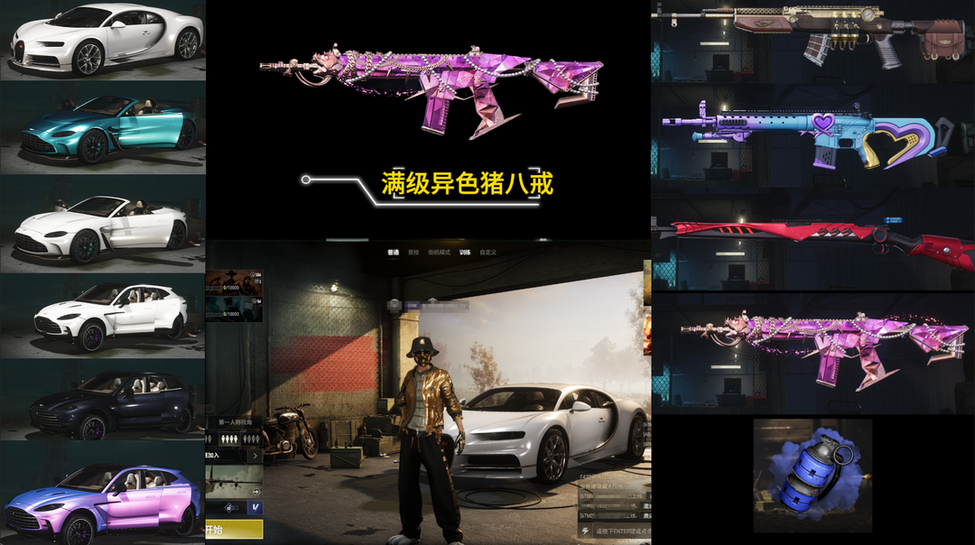 布加迪✨敞篷马丁+SUV✨满级异色猪八戒M416③午夜惊魂98K✨时光加农✨魔咒之力✨橙色烟枪✨拉风