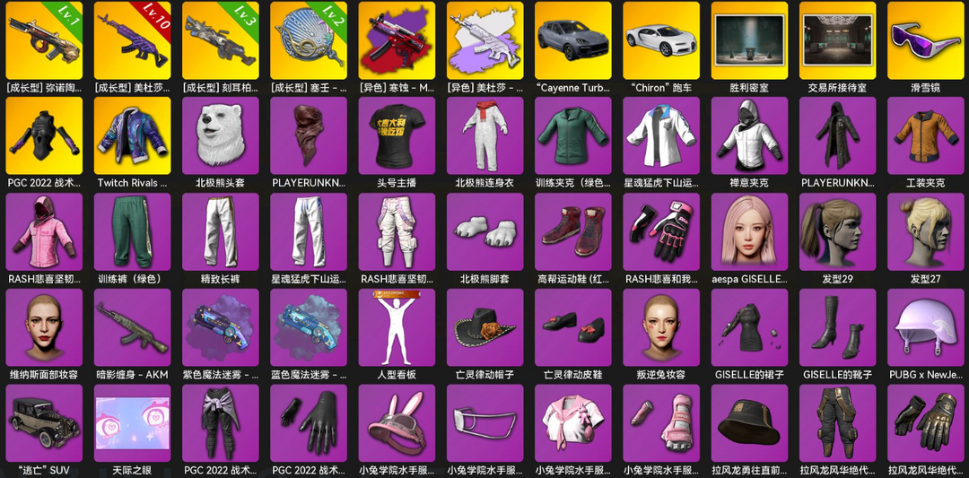 布加迪跑车/保时捷SUV/女团GISE套装/满级异色美杜莎/陶洛斯AUG/柏洛斯M249/塞壬锅/烟